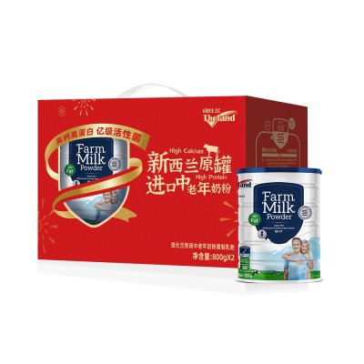 【礼盒装】新西兰 纽仕兰(Theland)中老年全脂含益生菌配方奶粉礼盒装 800g/罐*2