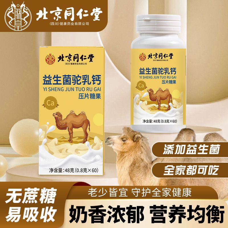 3瓶益生菌驼乳钙片补钙补肠胃益生菌有益菌吸收好成人中老年适用