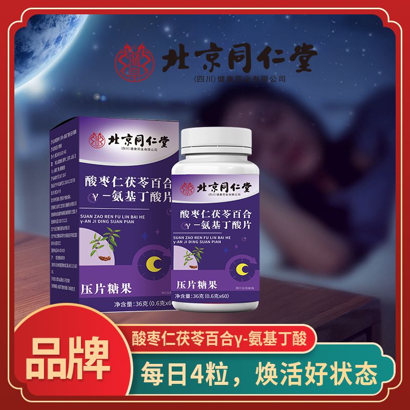 3瓶北京同仁堂酸枣仁茯苓百合丫一氨基丁酸片男女睡不着