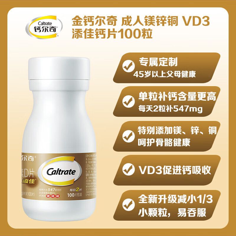 金钙尔奇 钙片 钙镁锌铜多种矿物质维生素D片60片