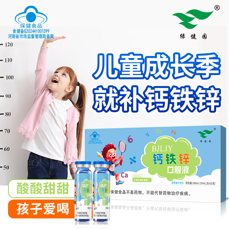绿健园钙铁锌口服液儿童1-3岁4-17岁幼儿补钙补锌青少年液体钙葡萄糖酸