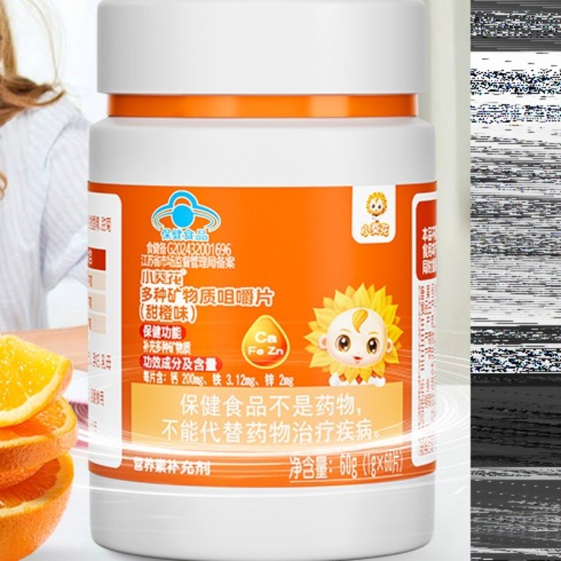 小葵花多种矿物质咀嚼片钙铁锌儿童成长钙片长高青少年补钙铁60片