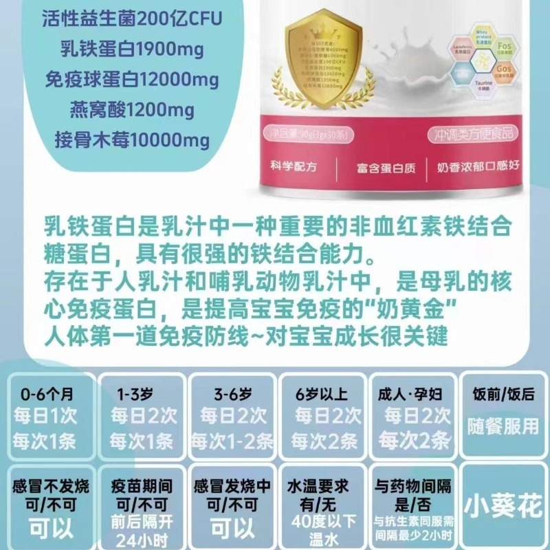 儿童乳铁蛋白乳清蛋白免疫宝宝接骨木莓免疫球蛋白小葵花启萌