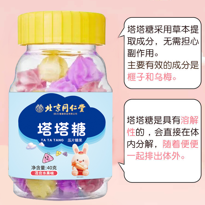 北京同仁堂 塔塔糖压片糖果 40g/瓶 儿童宝塔糖 驱虫 植物草本无添加蓝莓