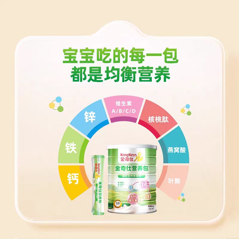 【新货】金奇仕钙铁锌婴幼儿童营养包60g 补充多种维生素钙铁锌营养包