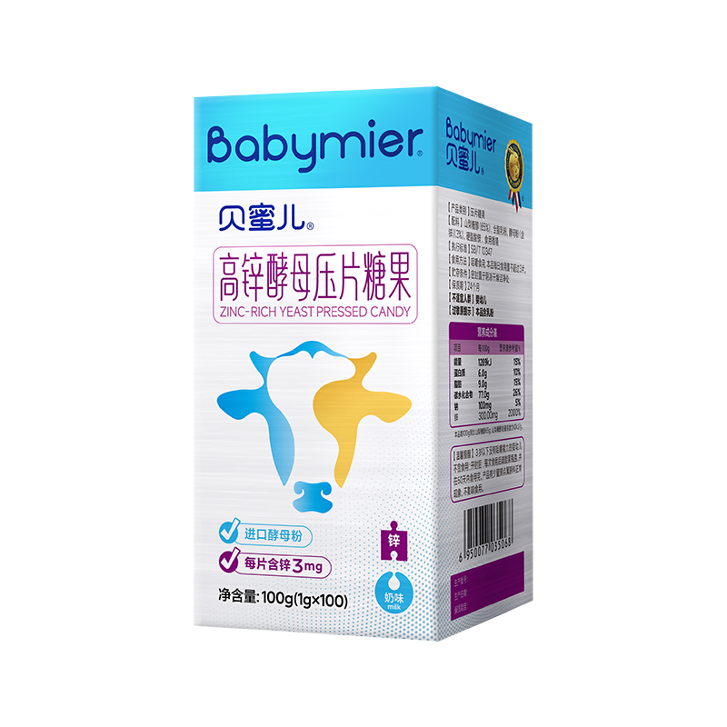 贝蜜儿高锌酵母压片糖果少年儿童锌咀嚼片牛乳锌酵母锌片100片