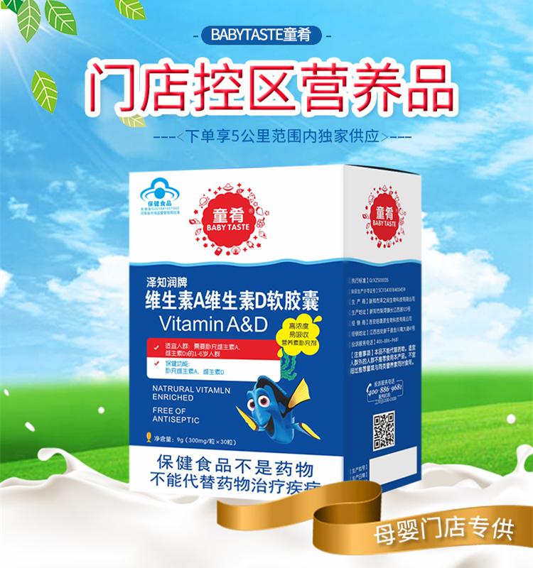 【正常发货,新日期】童肴维生素A维生素D液体软胶囊宝宝补充鳕鱼肝油乳钙DHA300mg×30粒