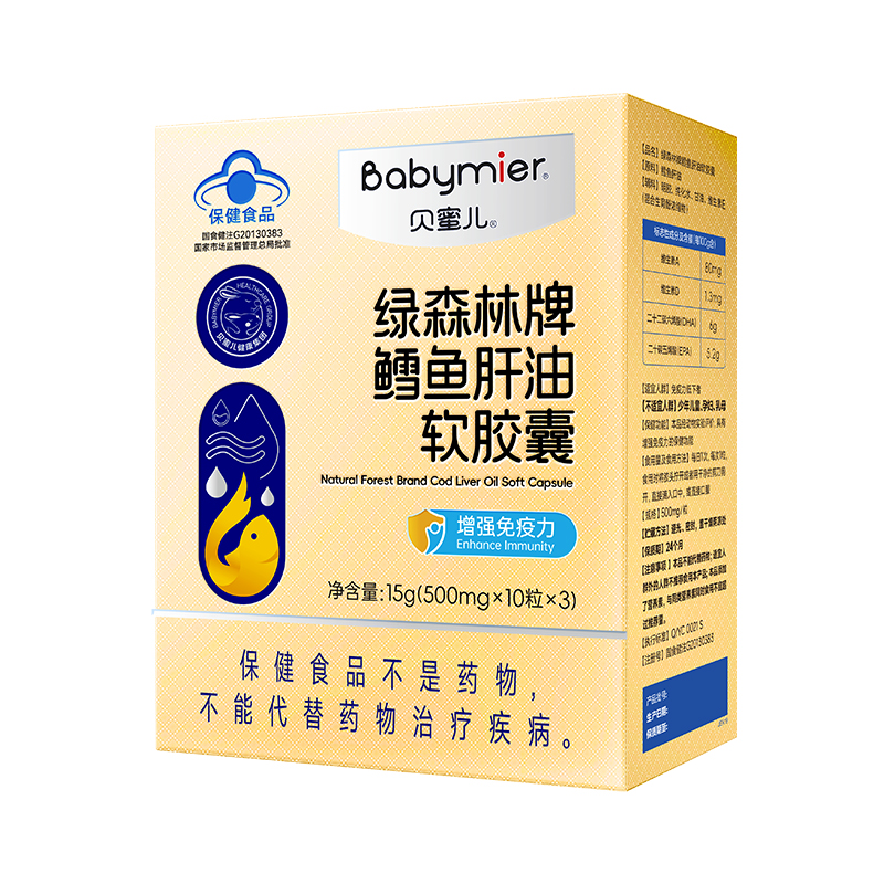 【25年新货】贝蜜儿鳕鱼肝油软胶囊含dha维生素d维生素a液体滴剂增强免疫力30粒