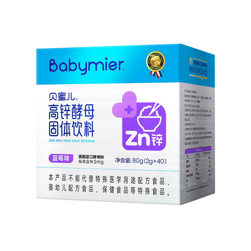 新品上市 贝蜜儿高锌酵母粉儿童酵母锌冲剂美国进口酵母锌营养蓝莓味40袋