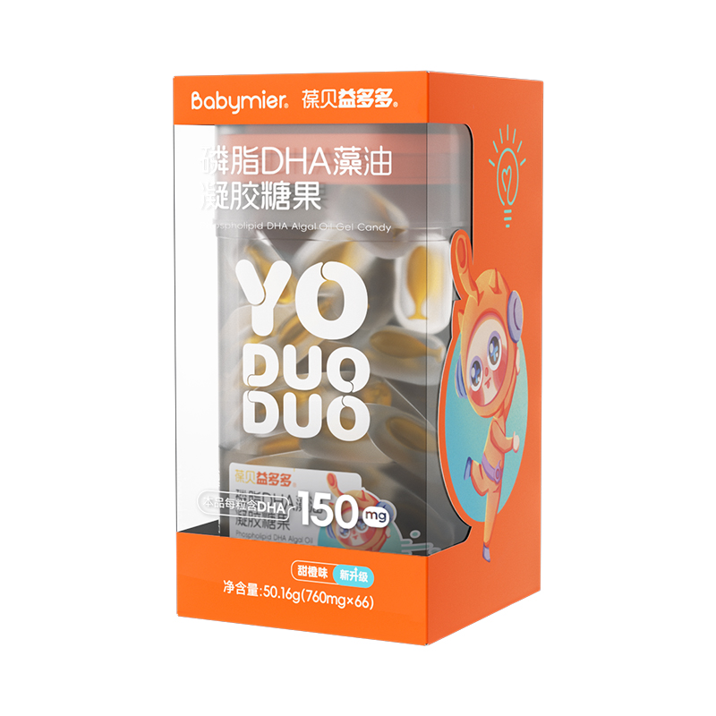 贝蜜儿YODUODUO葆贝益多多磷脂DHA藻油儿童孕妇液体软胶囊甜橙味66粒装