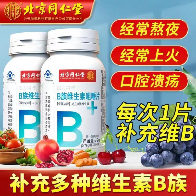 200粒 北京同仁堂 B族维生素咀嚼片 儿童成人孕妇维生素b1b2b6b12