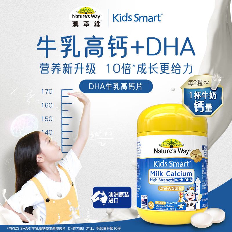 Nature’s Way澳萃维佳思敏钙片儿童dha婴幼儿补钙益生元进口牛乳高钙dha鱼油3岁以上佳思敏钙片香草味60片