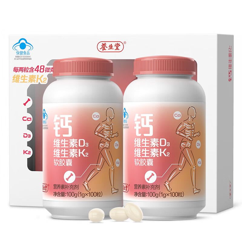 养生堂 钙片维生素d3维生素k2软胶囊 100粒*2瓶 青少年孕妇哺乳期胶囊青少年孕妇哺乳期中老年补钙