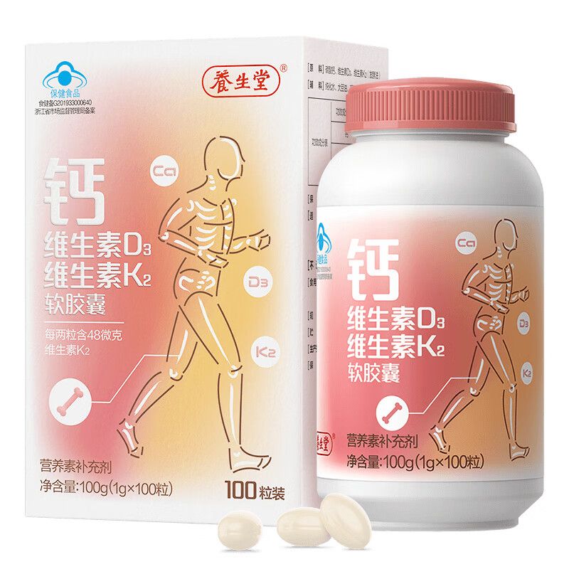 养生堂 钙片维生素d3维生素k2软胶囊 100粒 青少年孕妇哺乳期胶囊青少年孕妇哺乳期中老年补钙