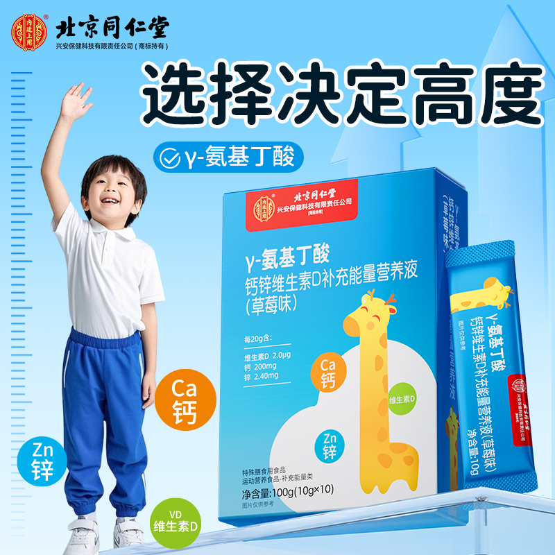 北京同仁堂钙锌维生素Dy氨基丁酸能量营养液水果味儿童青少年成长营养剂3盒