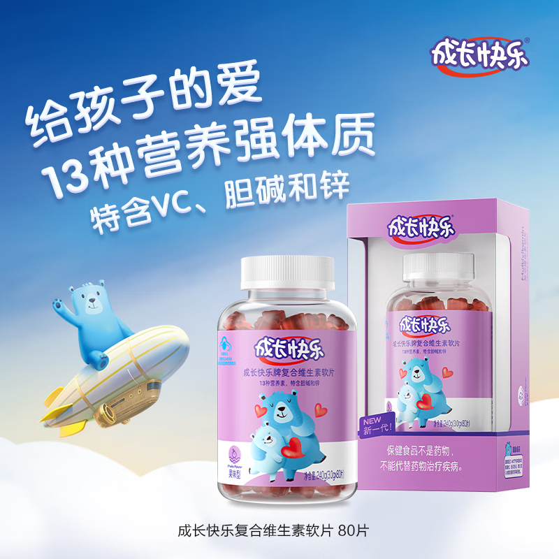 养生堂 成长快乐牌复合维生素软糖 80片 果味型 补充多种维生素锌