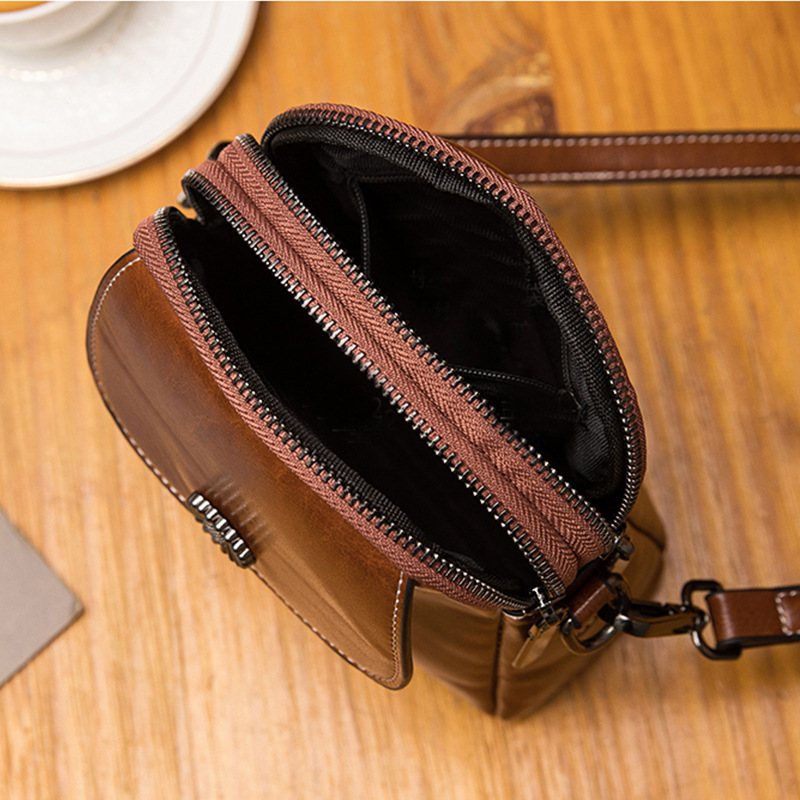 彤彤兔 多层零钱包油蜡皮迷你斜挎包网红百搭爆款大容量单肩小包