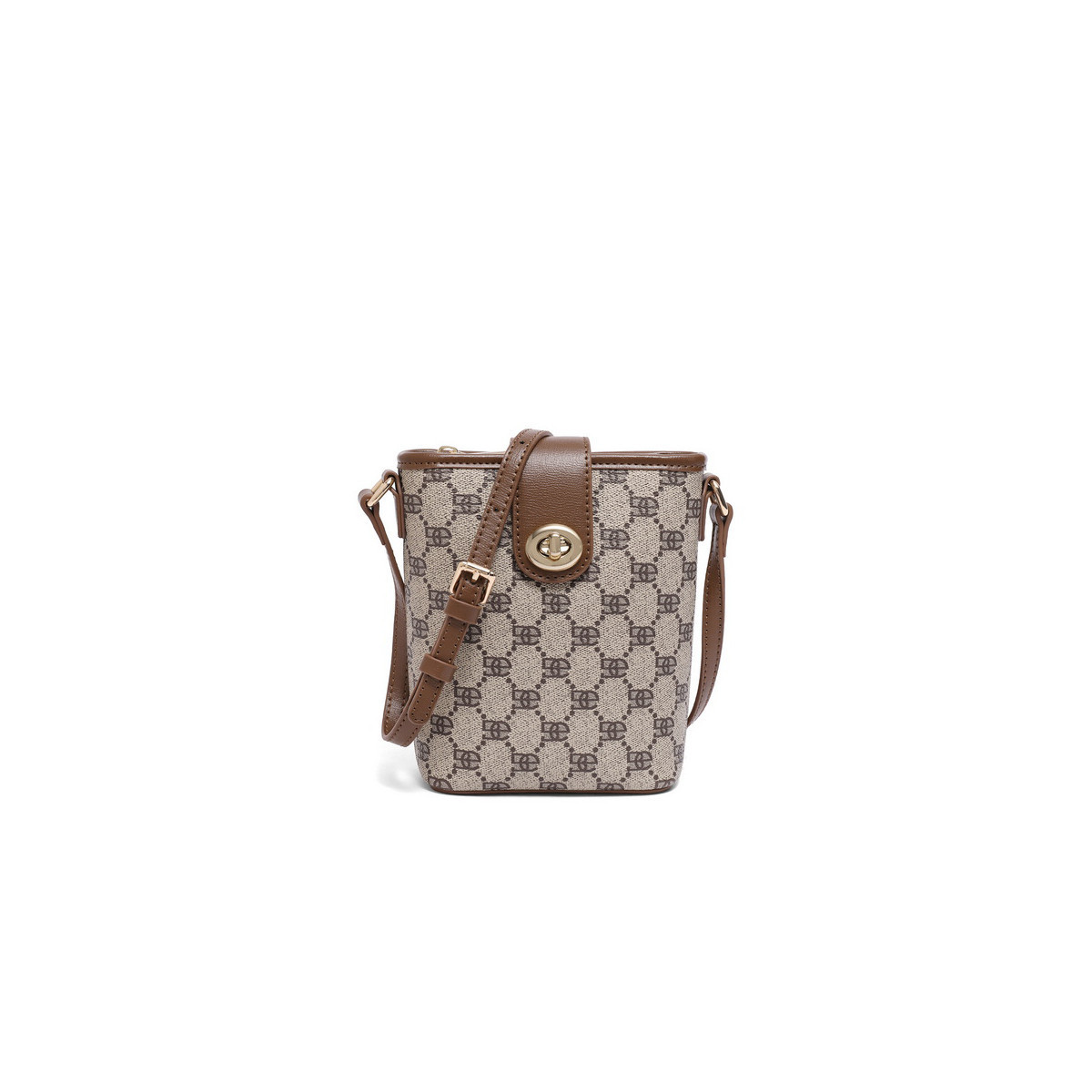 【经典百搭】百丽复古老花休闲斜跨手机包单肩斜挎轻便小巧水桶包 411674