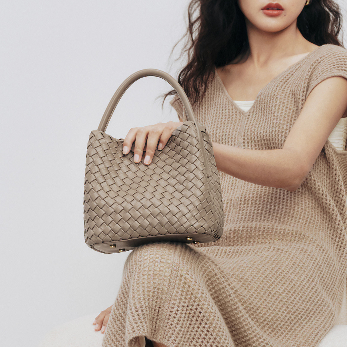 【花篮系列】百丽春夏假日菜篮包柔软编织手提水桶包 652570