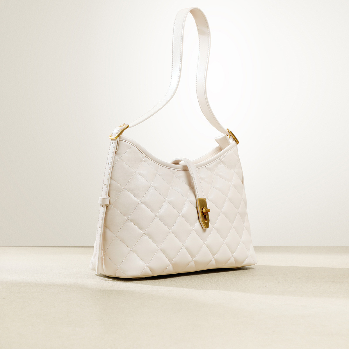 【气质优雅】百丽爆款小香风菱格通勤HOBO包大容量托特包 266330