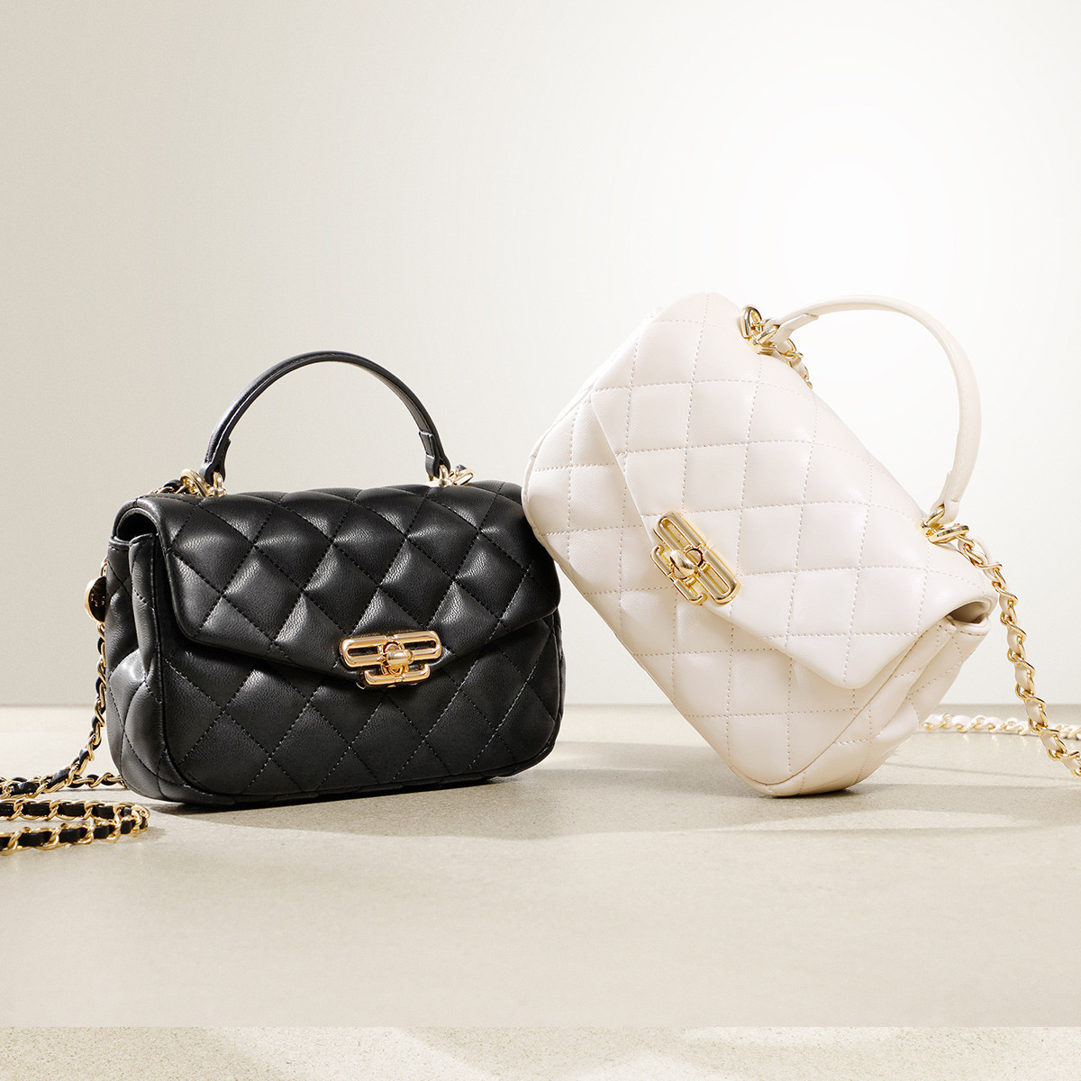 【气质千金】百丽春夏精致小香风手提菱格包斜挎绗缝小方包 689434