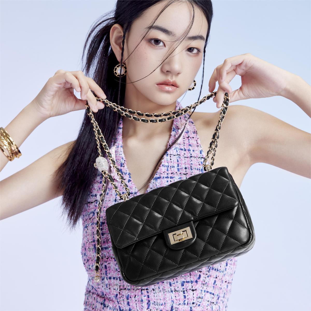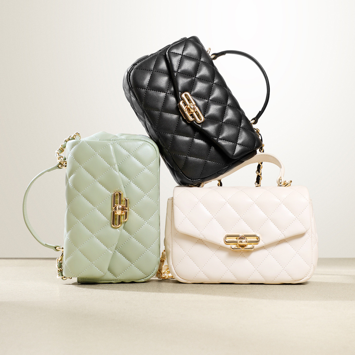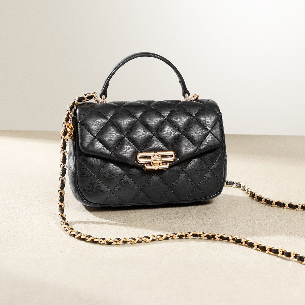 【优雅千金】百丽春夏羊皮菱格链条小香风百搭小方包 424410