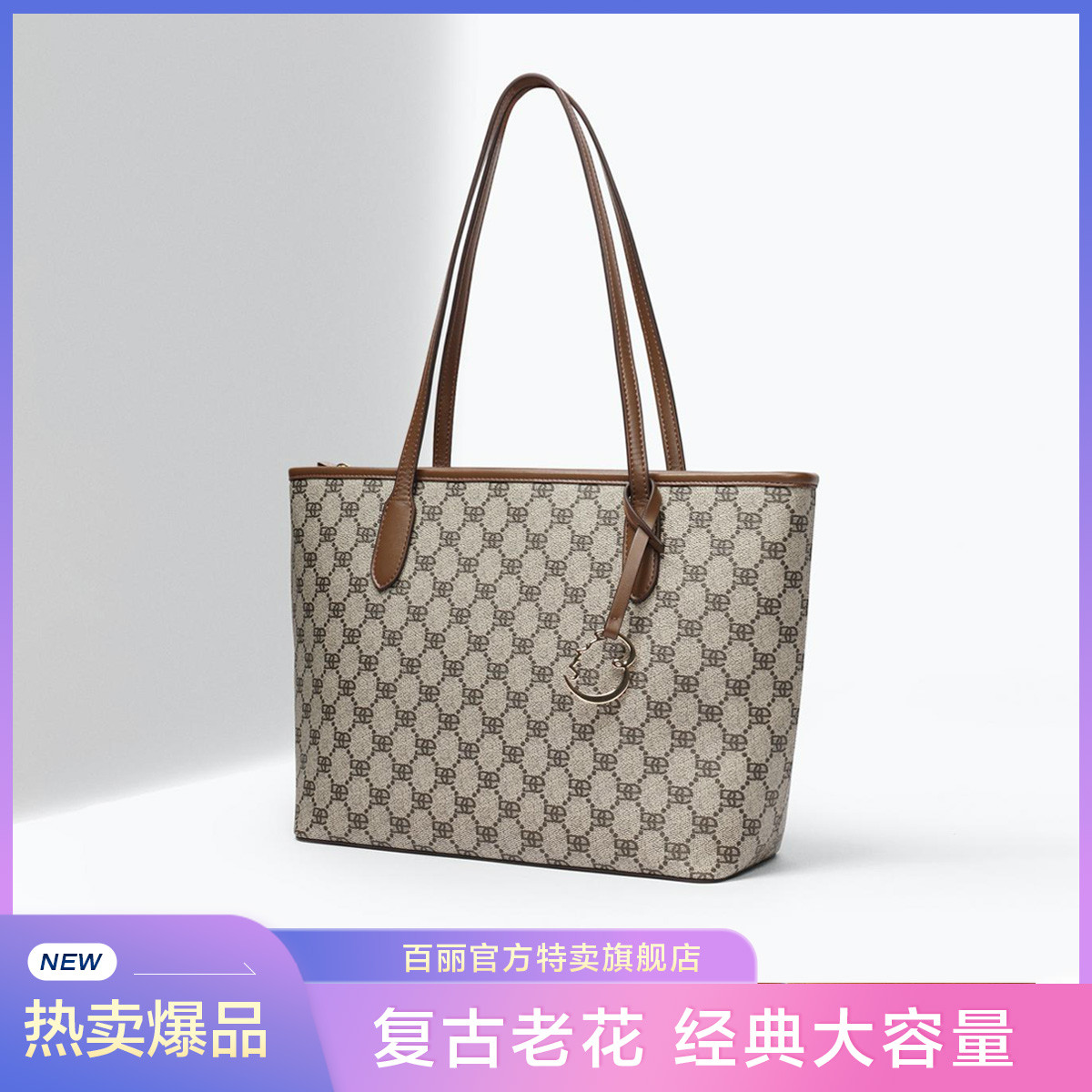 【热卖爆款】百丽立面复古老花大容量单肩托特包气质通勤手提包 331290