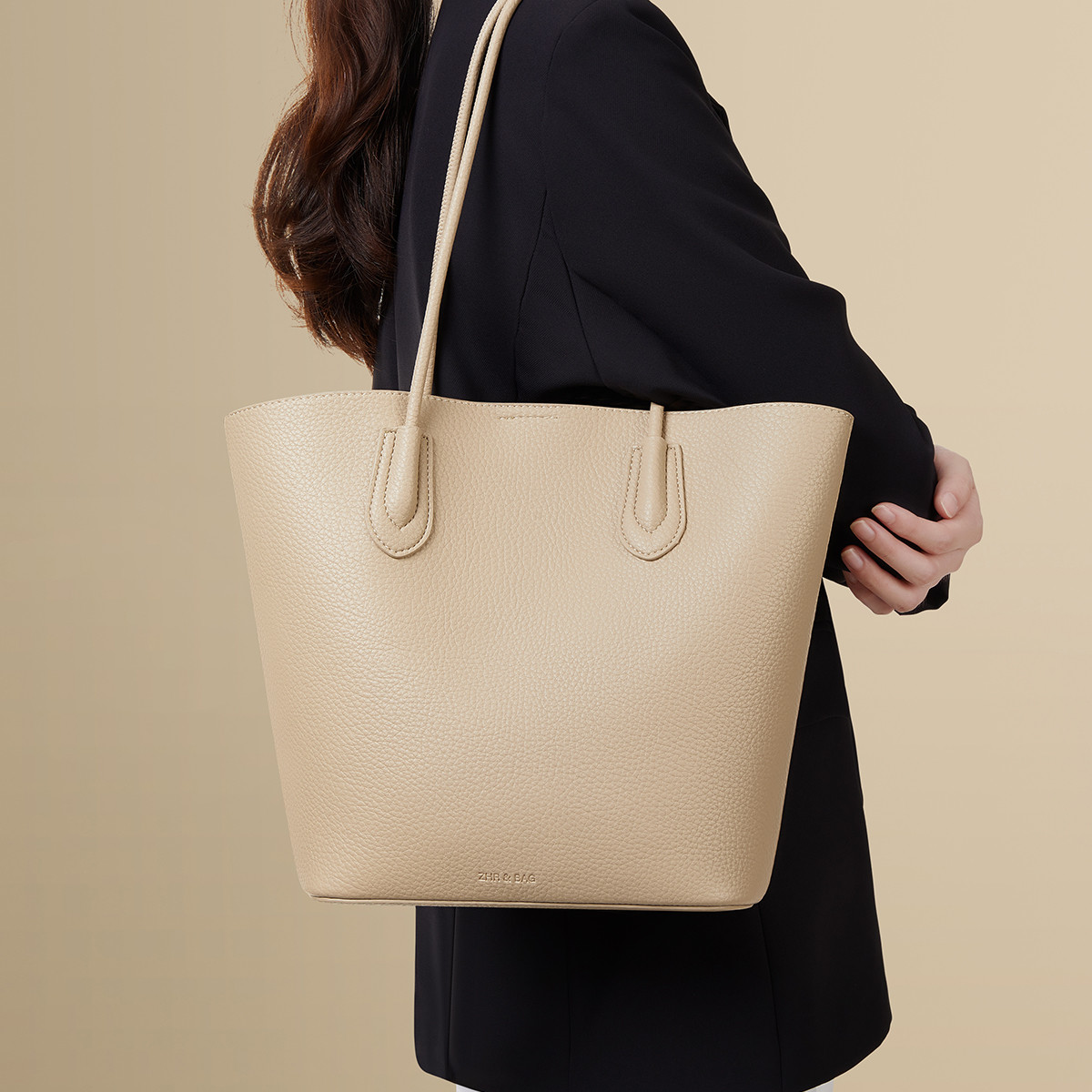 【托斯卡纳系列】百丽经典优雅风衣扣牛皮质感托特包 731802
