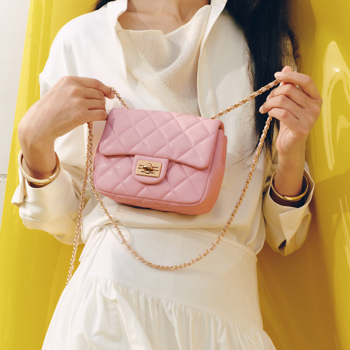 【优雅千金】百丽春夏羊皮菱格链条小香风百搭小方包 428506