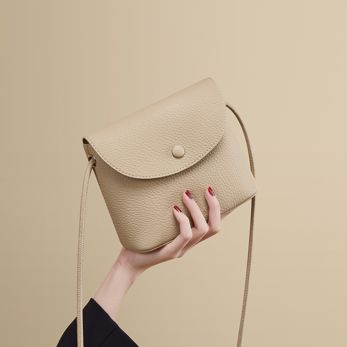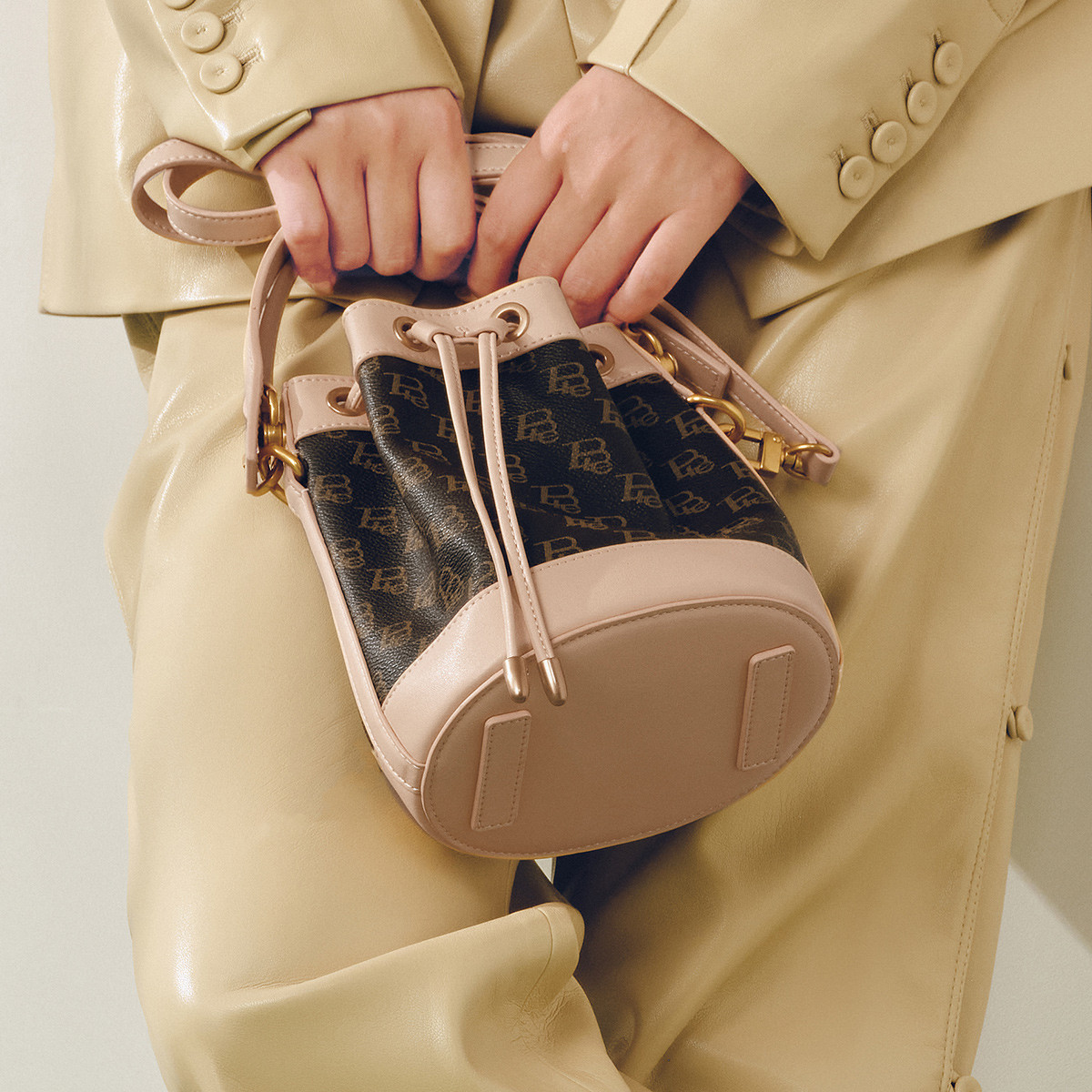 【复古轻奢】百丽春秋经典休闲斜跨水桶包小巧轻便抽绳手提包 439706