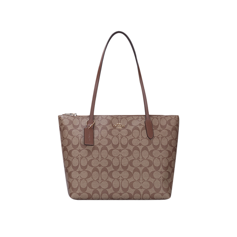 COACH 奥莱款中号女士PVC配皮单肩手提托特包 4455IME74