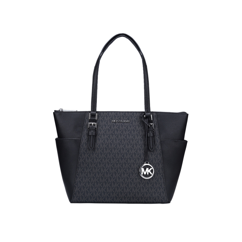 Michael Kors 奥莱款 CHARLOTTE大号PVC配皮女士牛皮革单肩手提托特包 35T0SCFT3B BLACK