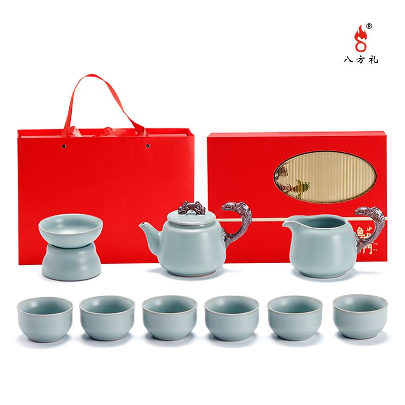 八方礼鱼跃龙门10入茶具(豆青) BFL2023-7