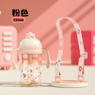 眯眯熊(Mimibear)PPSU材质 公仔学饮水杯 粉色330ml 【送背带绳】