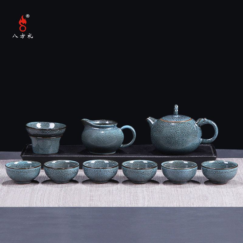 八方礼蓝天目釉龙头壶10入茶具中式茶壶茶杯礼盒办公泡茶送礼