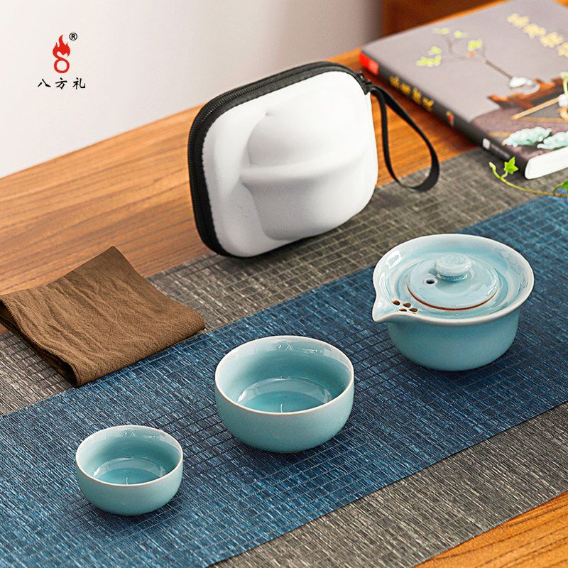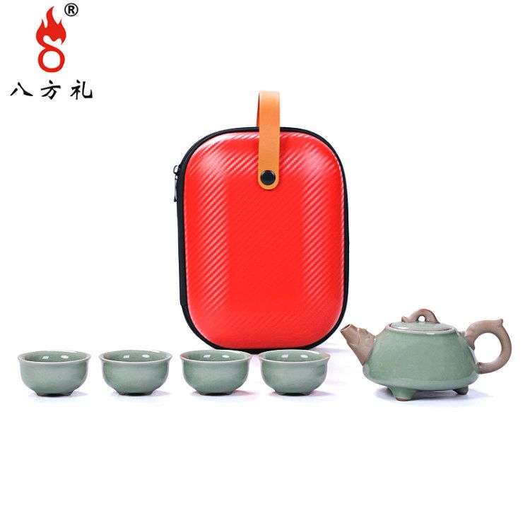 八方礼悠然自得快客杯4入便携式旅行茶具简易茶杯茶壶(梅子青)