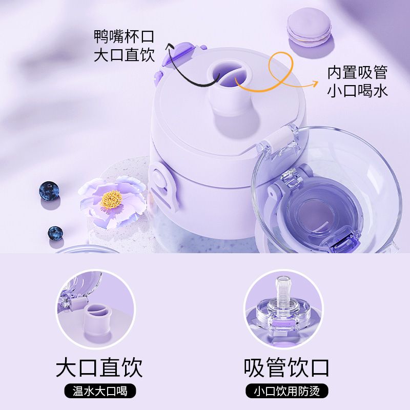 炊大皇 元气双饮水杯吸管杯YQ65A Tritan材质茶水分离 650ML大容量便携随手杯子