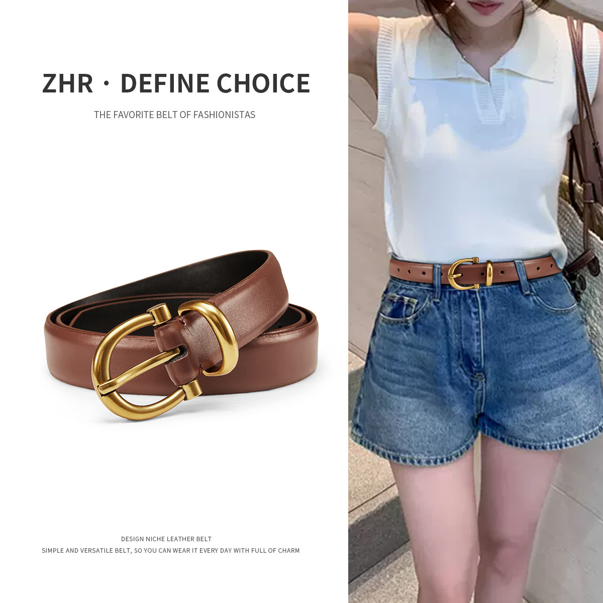 女士真牛皮针扣腰带时尚优雅腰链年轻人裤带2025款配裙子潮 375382