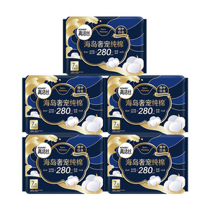 kotex/高洁丝海岛奢宠280mm纯棉夜用卫生巾7片*5包