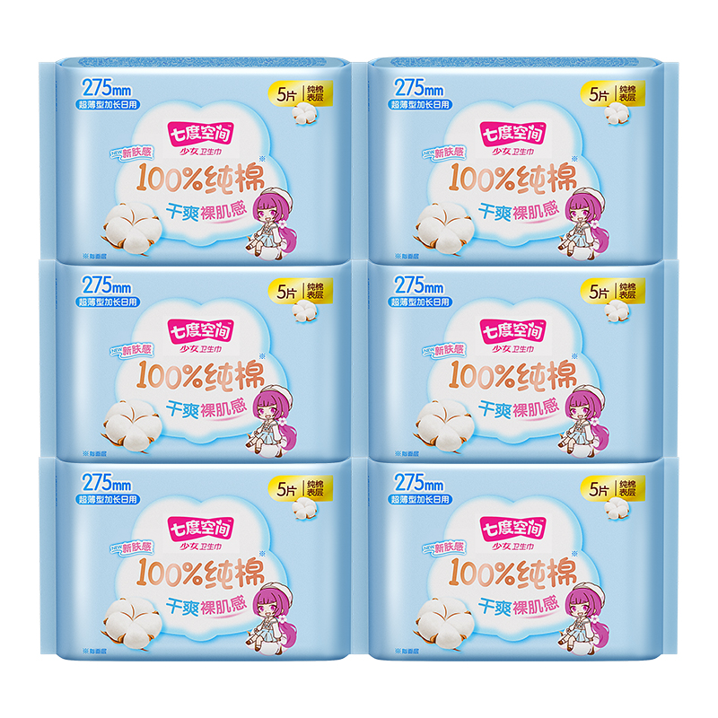 七度空间少女新超薄纯棉加长日用卫生巾5片