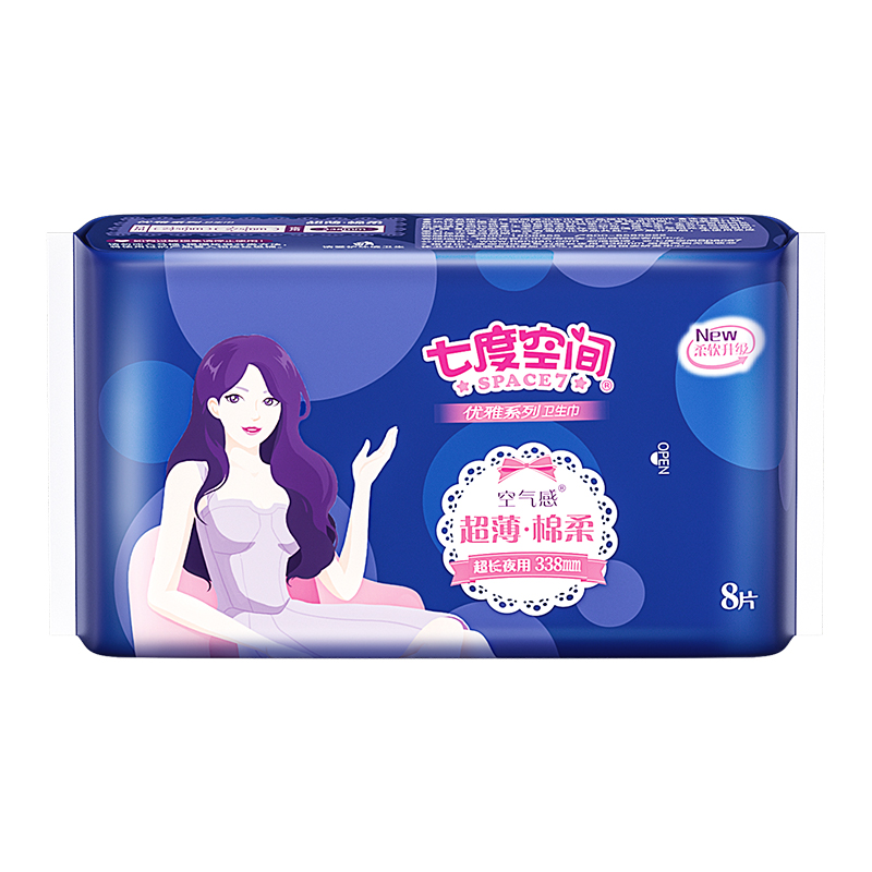 七度空间优雅系列超薄超长夜用卫生巾8片/包