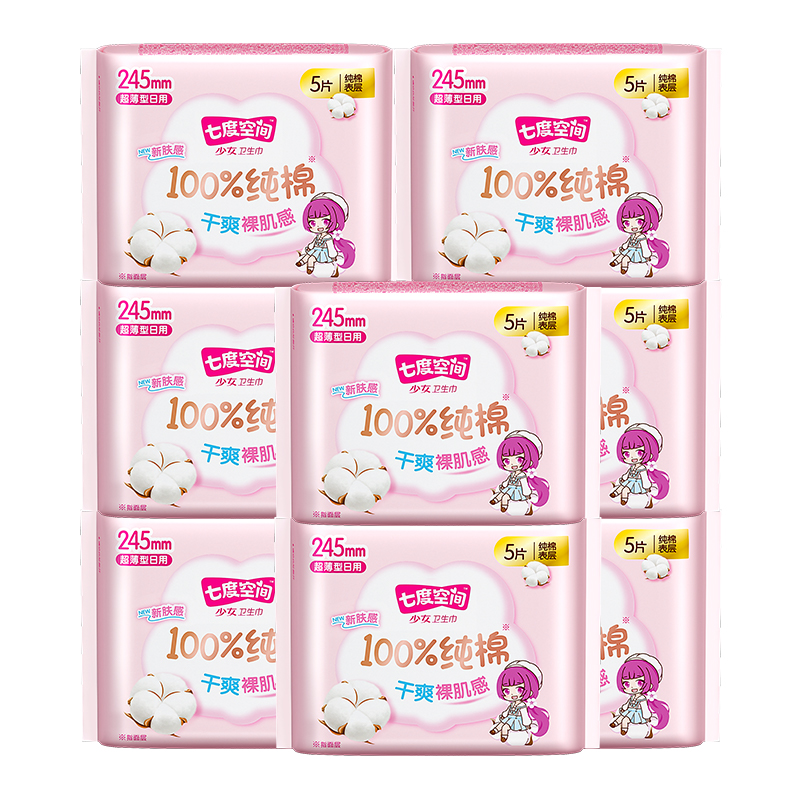 七度空间少女新超薄纯棉日用卫生巾5片装