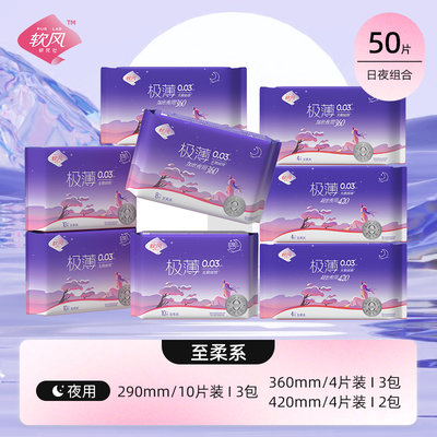 软风研究社 至柔天鹅绒卫生巾 夜用组合 8包50片 (290mm10片*3包+360mm4片*3包+420mm4片*2包)