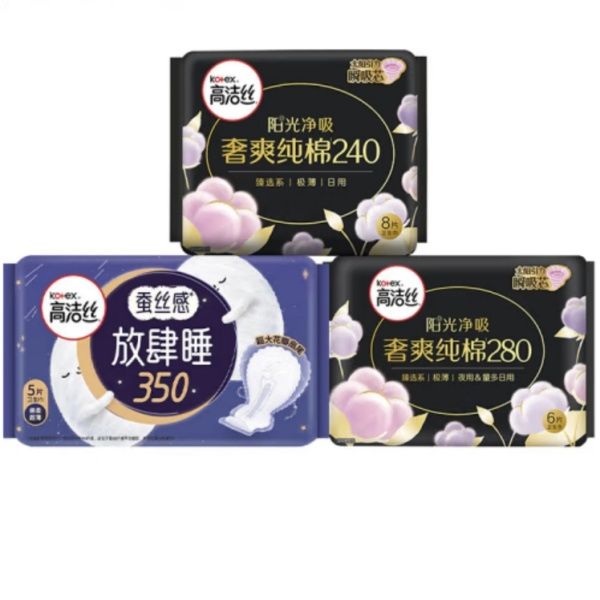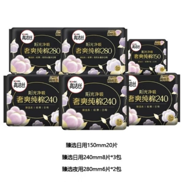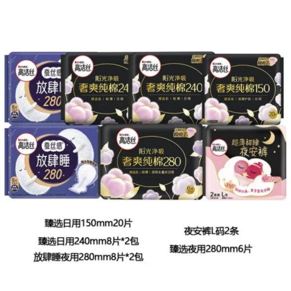 高洁丝 新品万有引力卫生巾露比日安裤日夜用组合套装 臻选240mm*8片+臻选280mm*6片+放肆睡350mm*5片