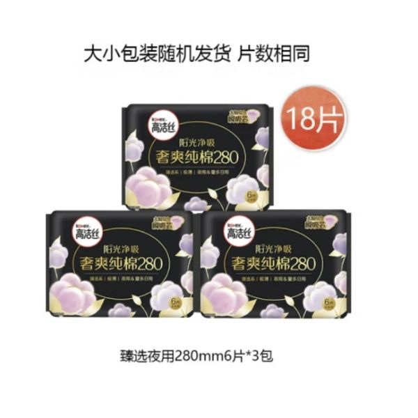 高洁丝 卫生巾日用奢爽纯棉姨妈巾 臻选 280mm6片*3包
