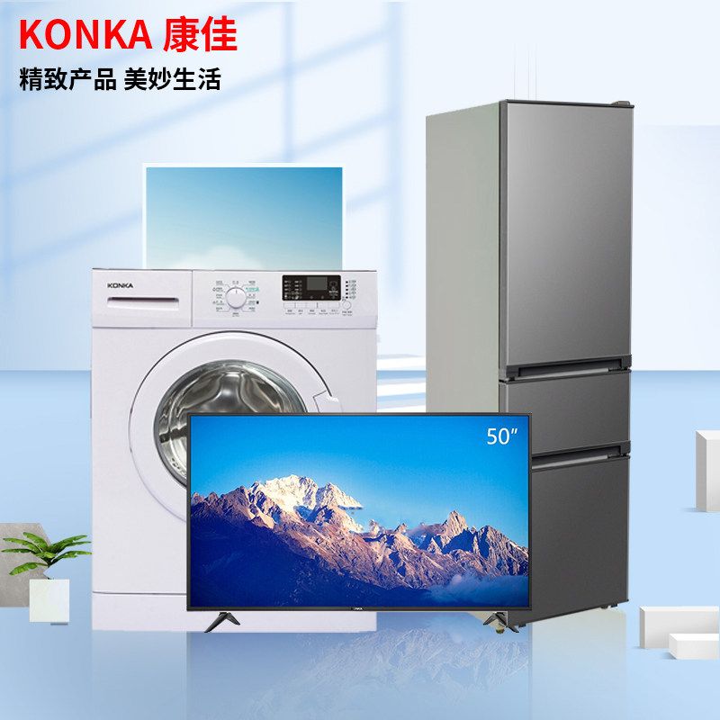 康佳冰洗电三件套大电套装洗衣机7公斤滚筒洗衣机50寸全屏电视208L三门冰箱