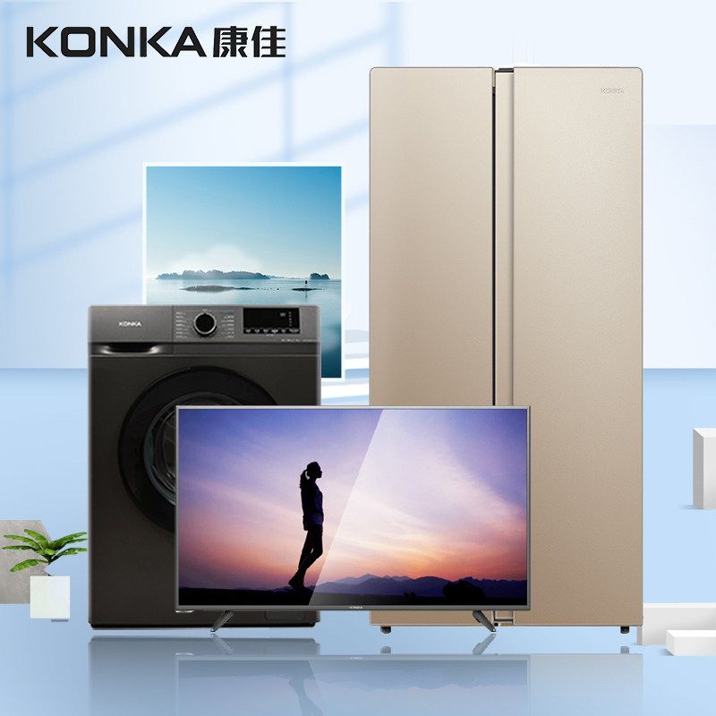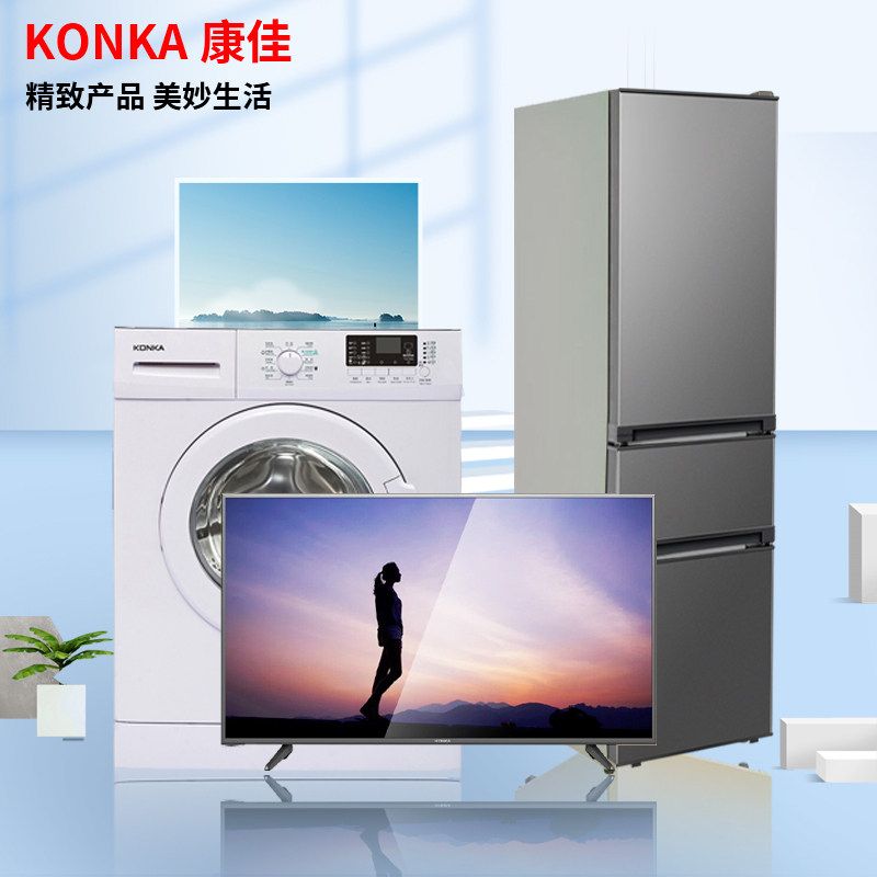 康佳冰洗电三件套大电套装洗衣机7公斤滚筒洗衣机65寸全屏电视208L三门冰箱