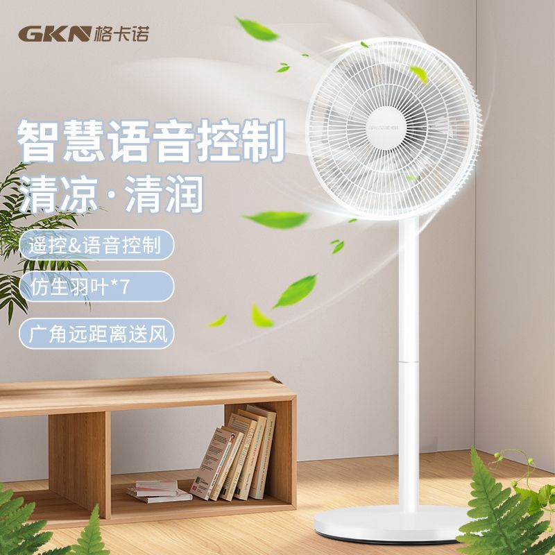 格卡诺风扇语音遥控平面扇家用静音大风力落地扇(陶瓷白)
