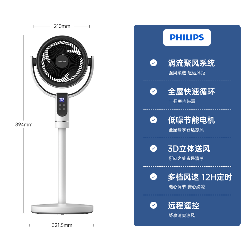 飞利浦空气循环扇落地扇ACR2242CFD遥控款 3D自动摇头轻音节能小型电风扇 台地两用对流换气扇