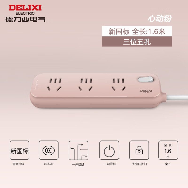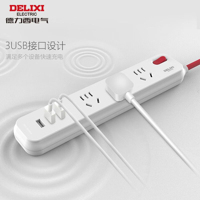 德力西 遇见系列延长线插座(带电源适配器)三位五孔1.6米 CD98E-DK3X 1.6